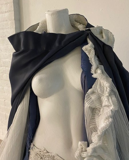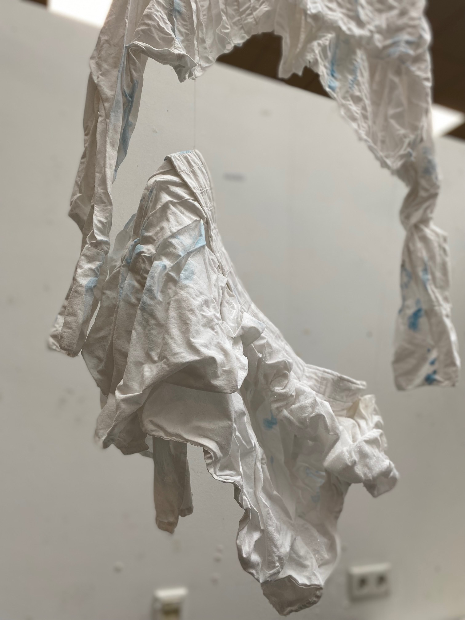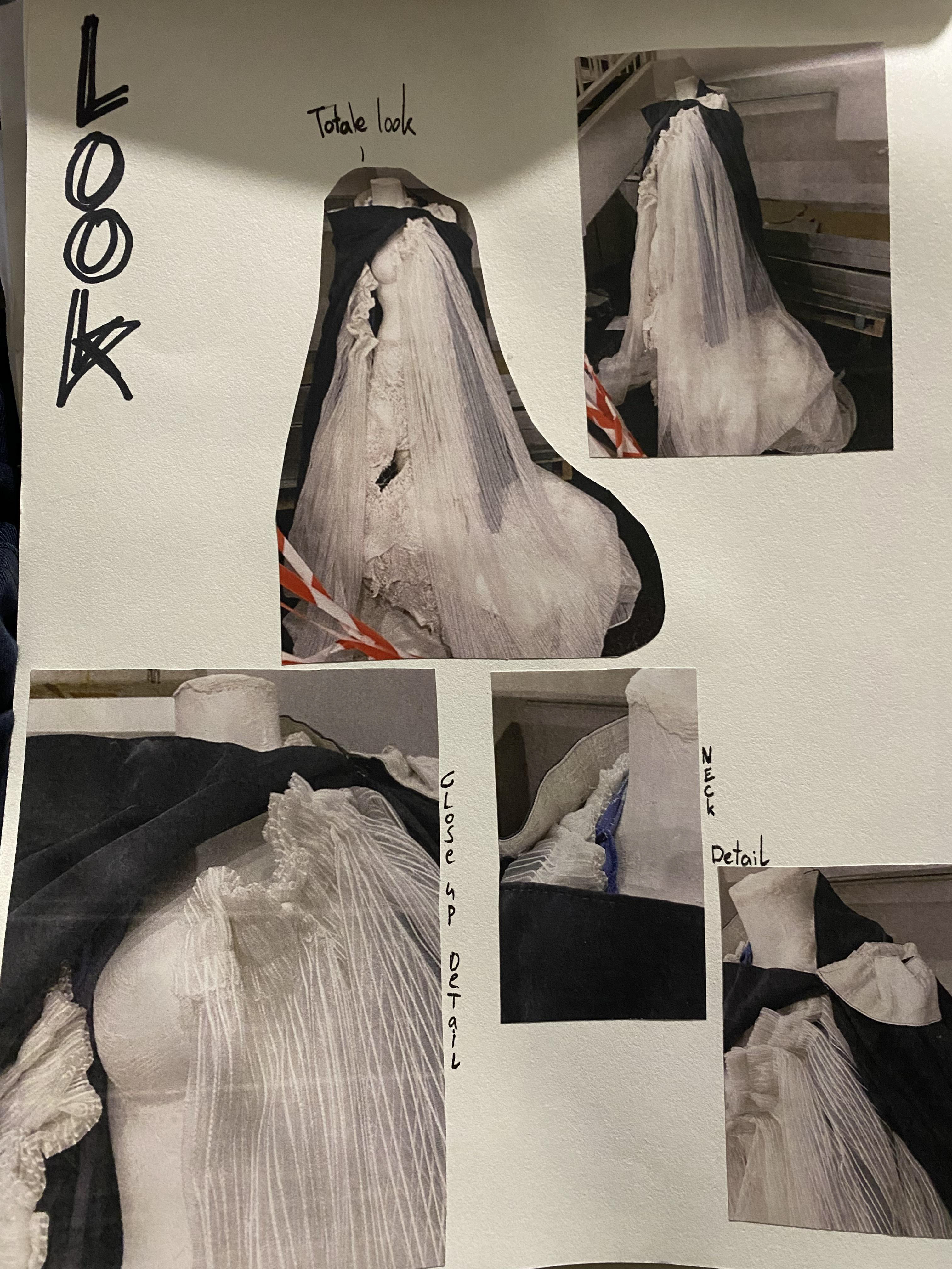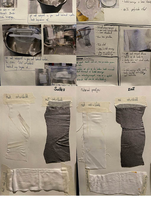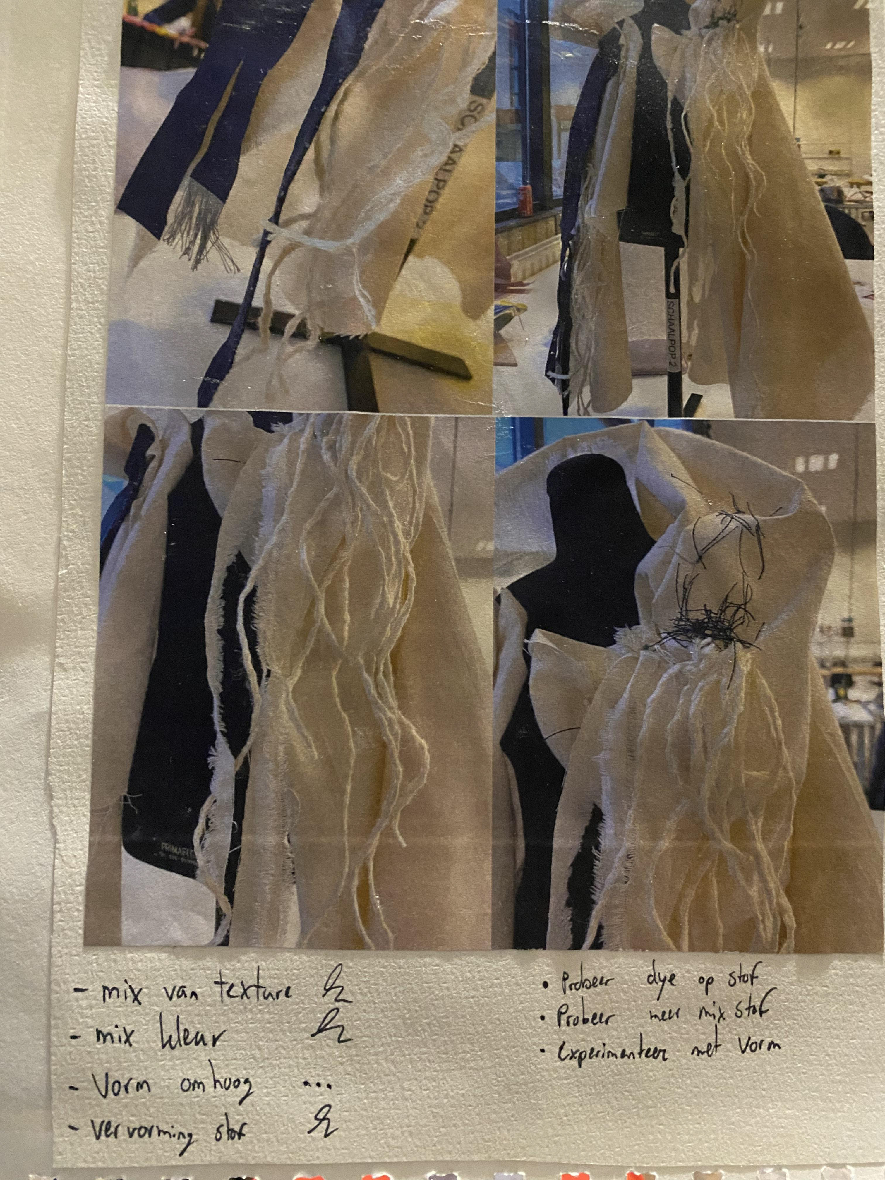 Experimenting with different materials like plaster, textile, wax and cristals. Developing her own cristals and transforming them into a garment.